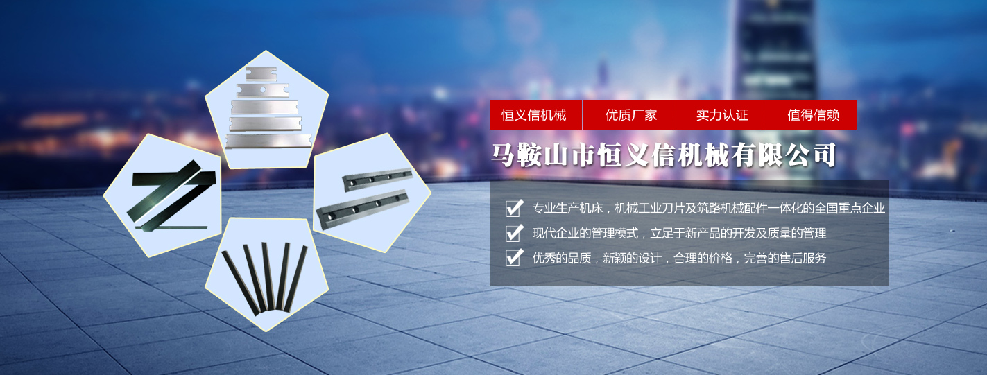 馬鞍山市恒義信機械有限公司是專業生產機床,機械工業刀片及筑路機械配件一體化的全國重點企業。公司座落于著名的鋼鐵城市馬鞍山市,豐富的鋼鐵資源為我公司的發展提供了得天獨厚的優勢。公司用現代企業的管理模式,立足于新產品的開發及質量的管理,以其優秀的品質,新穎的設計,合理的價格,完善的售后服務贏得了廣大客戶的充分信賴和一致好評。